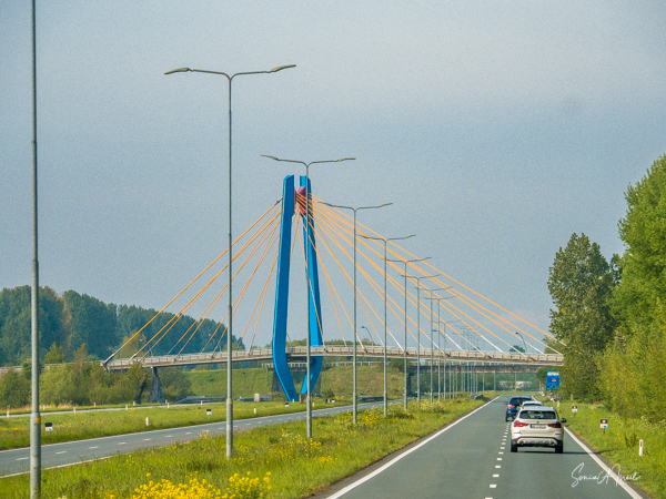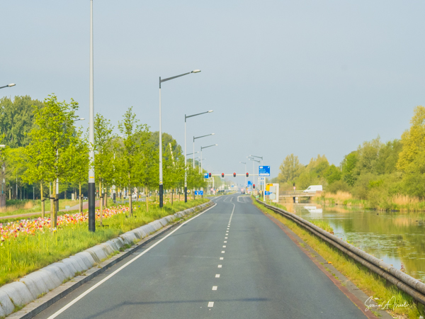 We drove from the port in Amsterdam, along roads lined with bridges, and canals and tulips. And of course windmills. Where ever you look in the Netherlands, at this time of year, you see tulips. We passed a stand along the side of the road where tulips were being sold. A woman on her bicycle had stopped to buy some. There was no one there. It was all on the honor system.