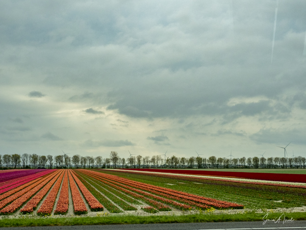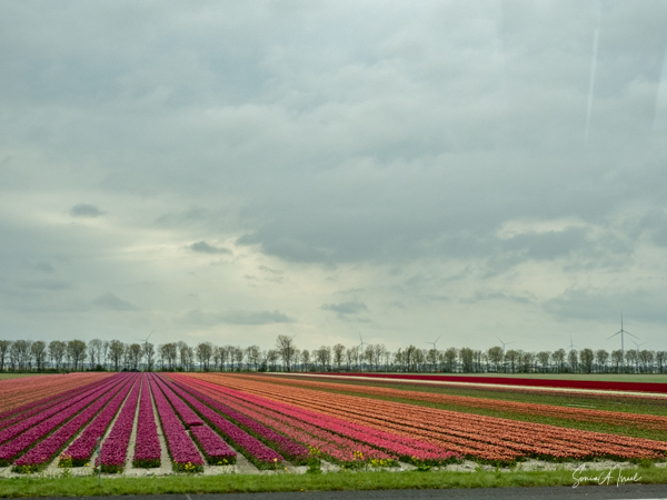 And then later, as we drove around the Bollenstreek area, we passed the most colorful, striped landscape. I know it sounds trite, but it really did look like carpets of color in rainbow stripes. And depending on the angle of view, the shapes of the rows themselves made the most interesting patterns and designs.