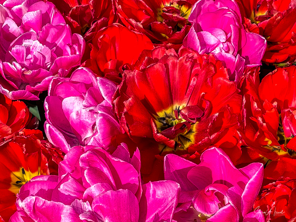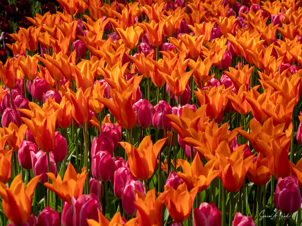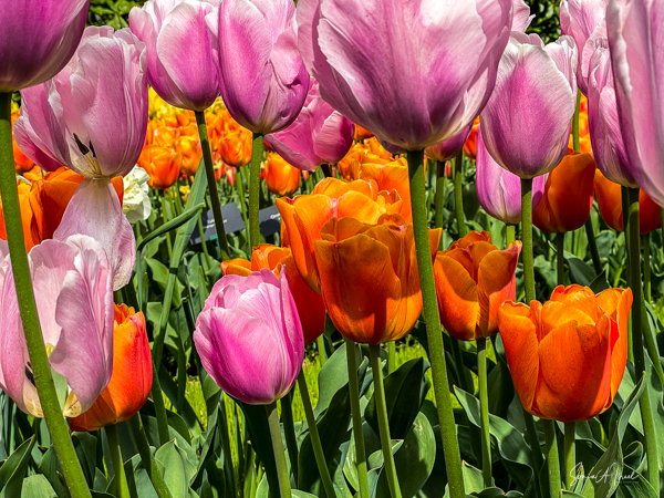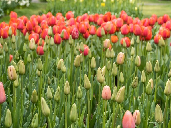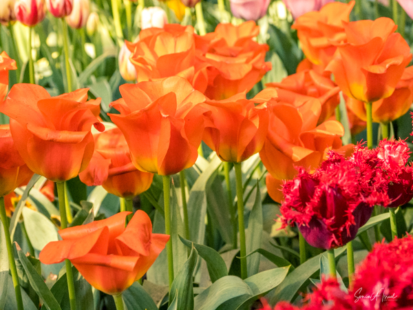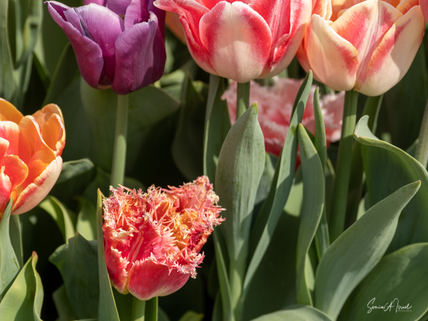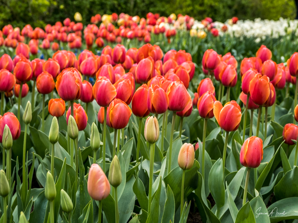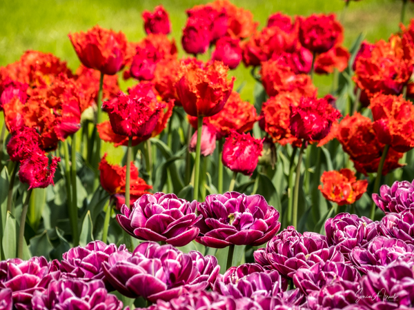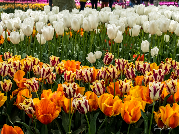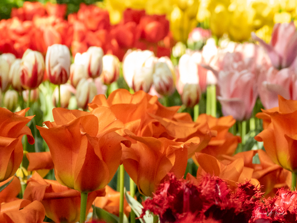 We walked in, so excited and the first sight to hit our eyes was a large mound of tulips in every possible color, all mixed in together. I just stood there a moment to take it all in. And then I started walking up and down the paths, trying to take in the cacophony of colors.