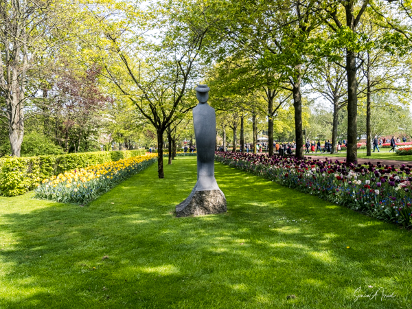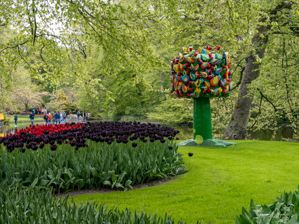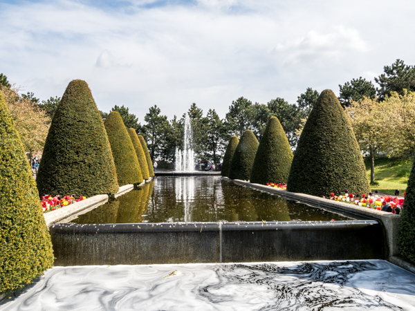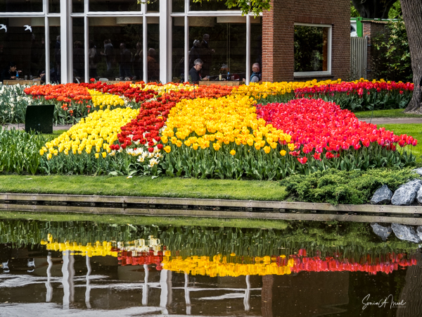 We walked over to the entrance where of course there were rows of tulips and water fountains. Everything at Kuekenhof is in the tulip motif, even the front gates.