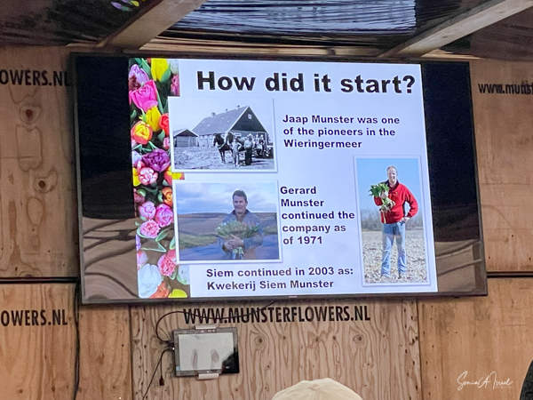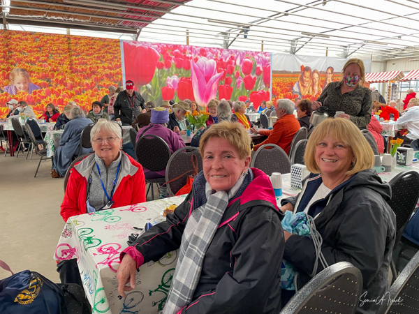 We got to visit a tulip farm, Kwekerij Siem Munster Farm, and I must say it was fascinating. The visit started with the “Farmer’s Wife” as she was constantly called. She even called herself the “Farmer’s Wife.” We all sat in a large warehouse where we were served tea and cookies while she showed us a slide show describing how the tulips are grown and cultivated. Everything of course was in tulips. Even the bathroom was fancy and looked like Delft china. This is another way for the farm to make ends meet. They hire many workers, now primarily from Poland, and have nice housing for them.
