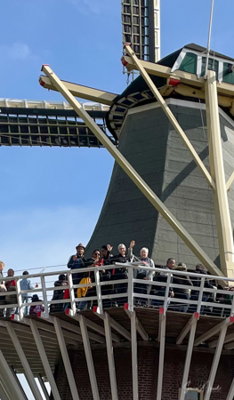 Since this is the Netherlands, of course there was a windmill. Debby and I climbed to the top to see the view while Ginger and Donna waited below and took our picture.
