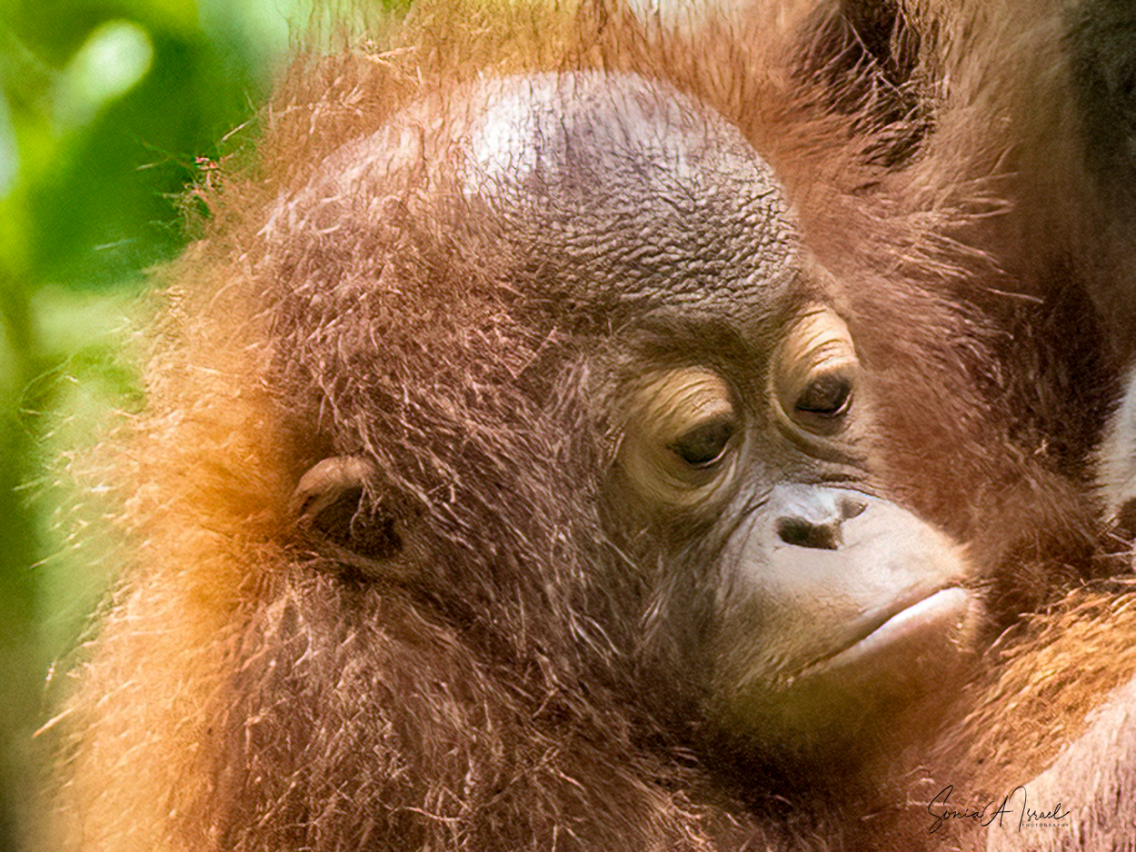 The Bornean orangutans are critically endangered with only about 105,000 left. Bornean orangutan populations have declined by more than 50% over the past 60 years, and the species’ habitat has been reduced by at least 55% over the past 20 years. The severe decline in the population is primarily due to us humans who poached them for bushmeat (a practice which decreased once children were taught in schools about the importance of conservation and they then educated their parents), killed them in retaliation for consuming crops, illegal pet trade, and perhaps most importantly, due to habitat destruction and deforestation for logging and palm oil cultivation (more on this later).