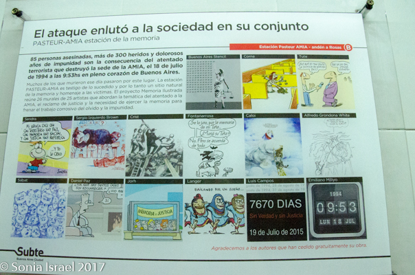 So, why the subway station? The entire station is covered in murals and memorials remembering the AMIA attack.