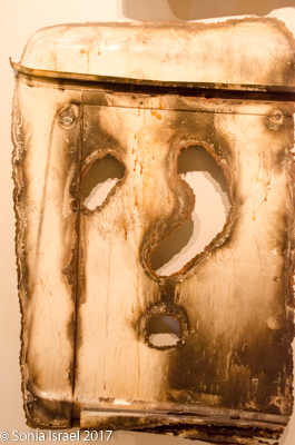 When you are allowed entry to the compound, you walk through steel doors into a courtyard with an Agam sculpture as its centerpiece. Yacov Agam, a famous Israeli artist known for his kinetic art, designed this sculpture as a tribute and memorial to the victims of the bombing, the Monument to the Memory of the Victims of the Terrorist Attack on AMIA.