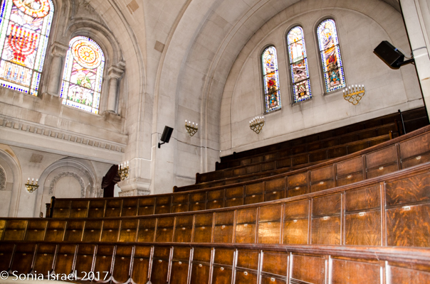 We spent a bit of time here, both downstairs and upstairs, taking in the beauty, imagining what it must feel like and sound like during a service when the seats are full, and the voices sing out. Unfortunately, we were not here for a Shabbat service.