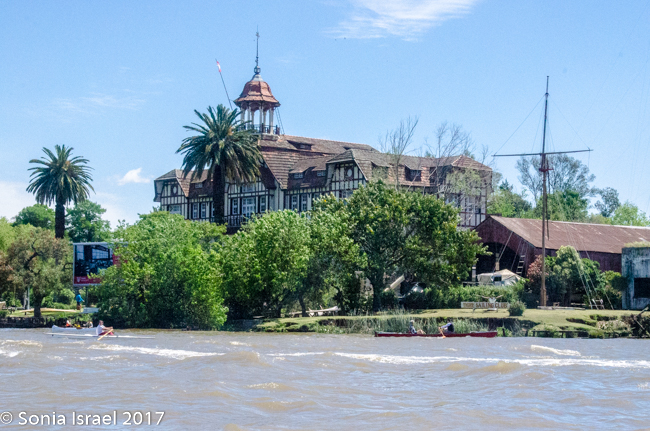 As we left the city behind us and entered the Parana Delta, with water the color of a latte as it is tinted by the sediment resulting from the large quantities of water from the rest of South American’s great rivers being forced through the smaller tributaries. We began seeing small homes, and some not so small homes, many on stilts, long the shore, each with its own boat and dock. We passed the house of former Argentina president Sarmiento, who encouraged people to make their homes here. Many of the homes are weekend homes for the wealthier Argentinians. There are no roads on most of the islands so the only way to get around is by boat. The supermarket is a boat. Garbage is collected by boat. Pizza is delivered by boat. Gas stations and restaurants can only be reached by boat. Everything comes by boat. Sort of like the floating markets of Asia.
