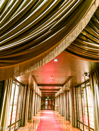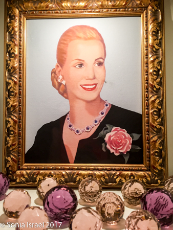 There was a long canopy and red carpet leading into the hotel. When we walked into the hotel, everything was red. Red carpet. Red lights. We walked down a long hallway covered in a red rug with a long, black horsehair bench running the length of the hall and crystal chandeliers on the ceiling. We peeked into the library lounge (which was all white). And of course there was a portrait of Evita.