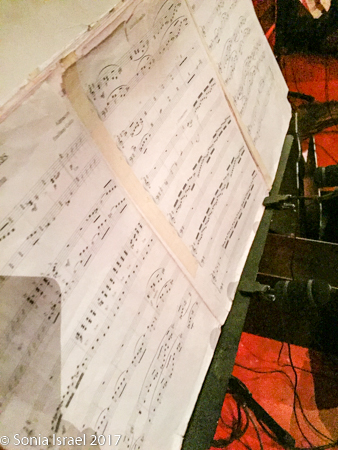 The area to the left of us was where the musicians sat, so it was easy to watch them. There was mural screen of dancers on the wall behind the musicians, and when they leaned against it, it fluttered as if the people were dancing. The musicians were an ensemble, known as the orquesta típica, which included a violin, bass, flute, piano and two bandoneóns (a type of concertina traditionally used to play tango).