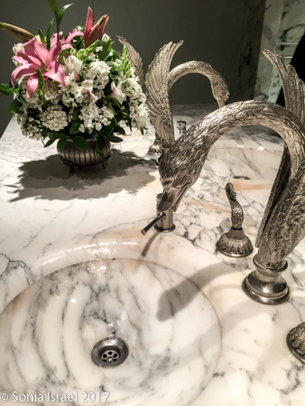 I stopped in the Ladies Room, which was all in Italian marble with large swan faucets. Maybe just a bit over the top, but nevertheless, fun and fitting in this hotel.
