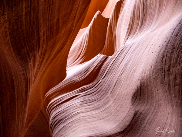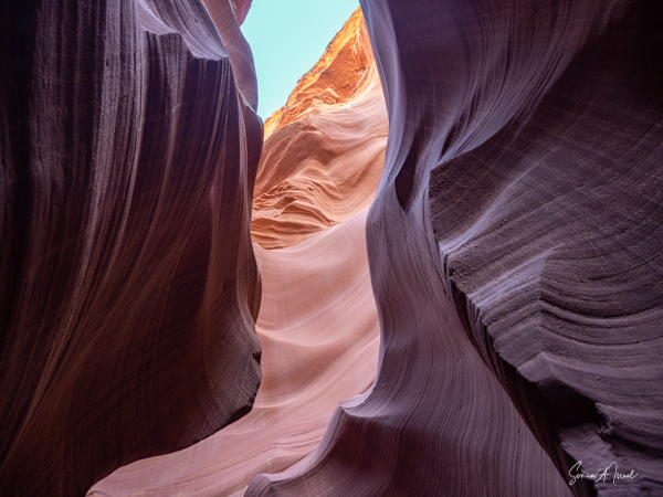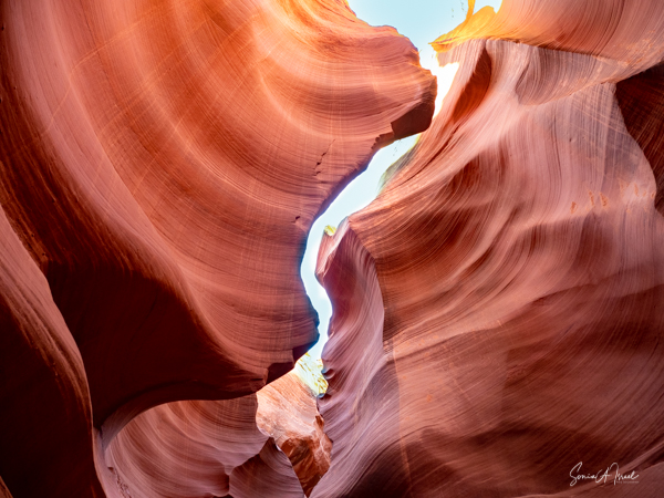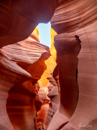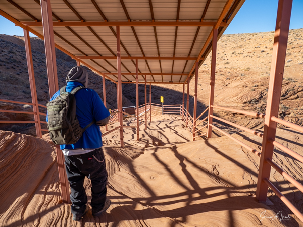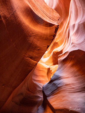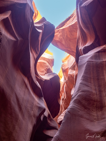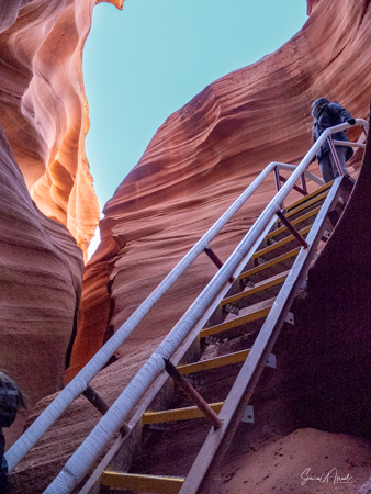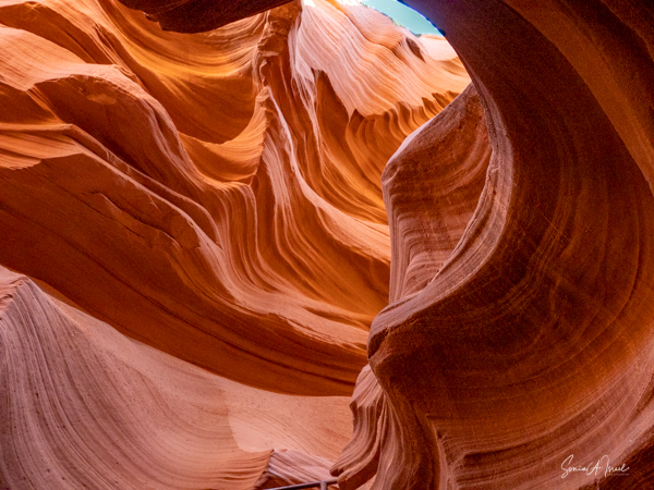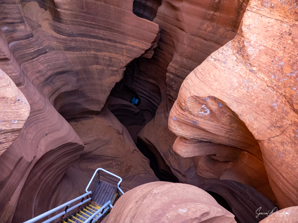 The Upper Antelope Canyon is called Tse Bighanilini by the Navajo, which means “the place where water runs through the rocks.” The Lower Canyon is called Hazdistazi which means “spiral rock arches.”  We visited the Lower canyon.