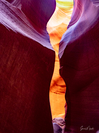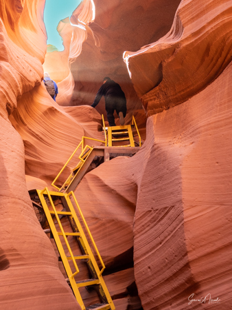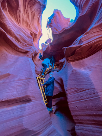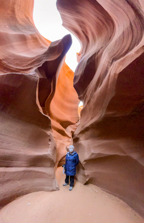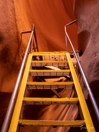 The Upper Canyon is about 660 feet long. Although we did not visit the Upper Canyon, I will briefly tell you that it is an easier visit than the lower one. The entrance and the entire hike is at ground level so there are no stairs or ladders to climb. Since it is higher up, there are more direct sun beams, but mostly in the summer.