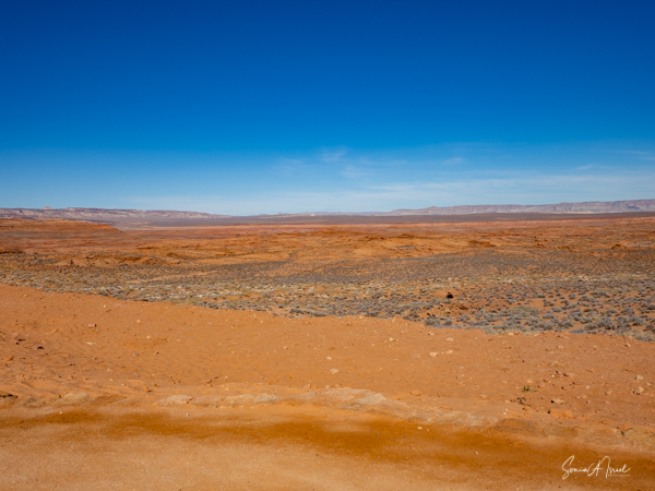It was a long hike on a paved path down to the bend. But we were surrounded by beautiful desert in all colors so there was always something to look at.