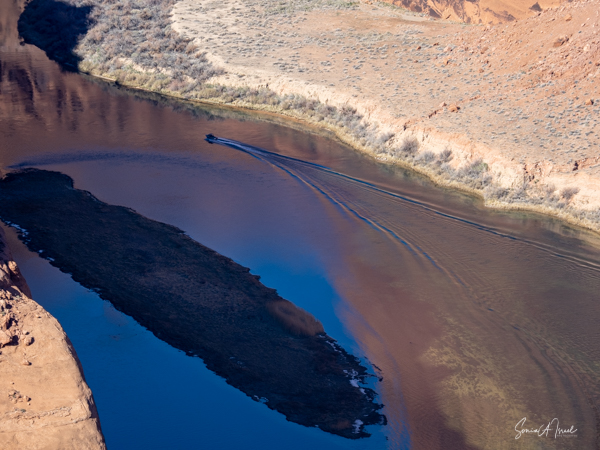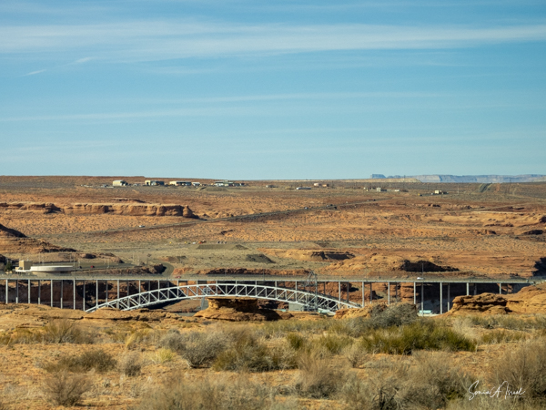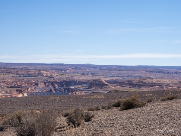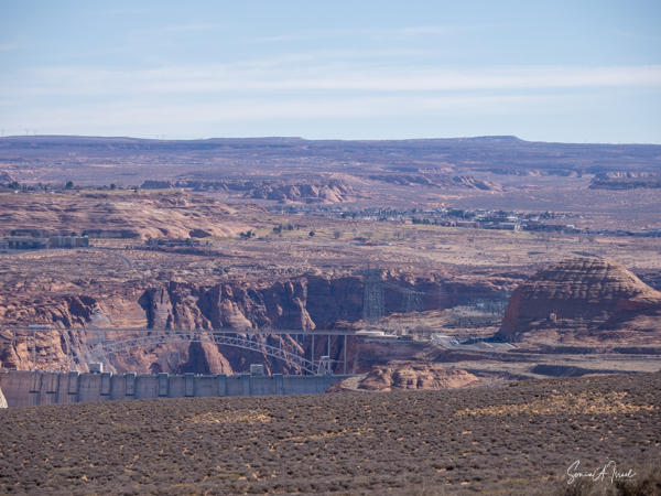 The Glen Canyon Dam is only five miles from Horseshoe Bend. The dam rises 710 feet above the bedrock within the steep, rust-colored sandstone walls of the Glen Canyon. It harnesses the power of the Colorado River, thus providing water and power to millions of us living in the West.