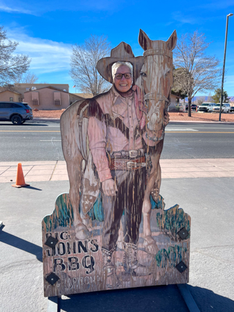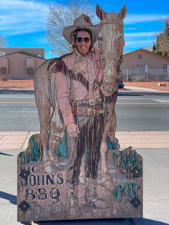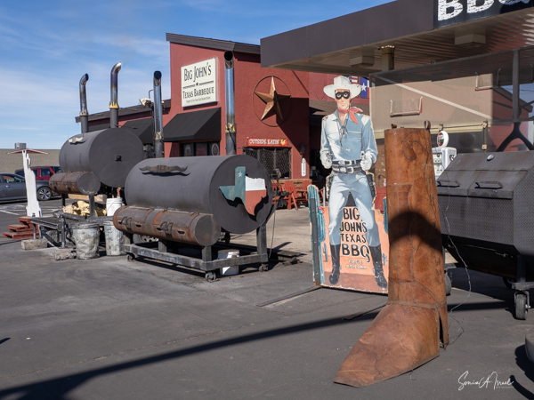 We stopped for dinner before heading back to Las Vegas. We each chose our own place to eat in Page, Arizona. Ruthi and I chose barbeque at Big John’s, described as “a BBQ joint with a retro vibe slinging brisket & other slow-smoked eats in a former gas station.”  And it was delicious as well as indeed, retro.
