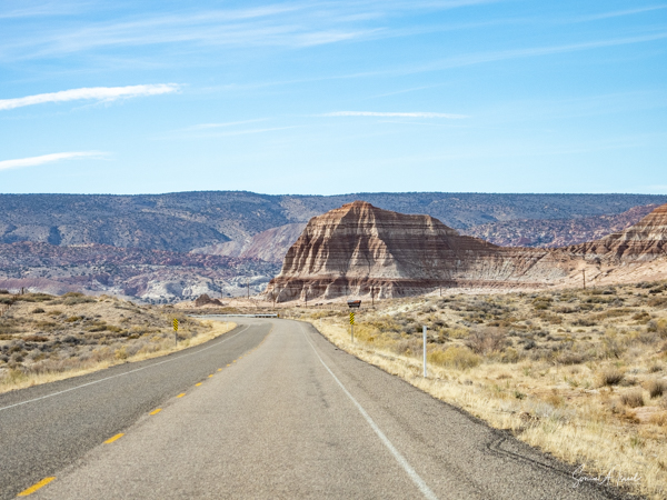 As we drove along the Utah Scenic Byway (SR-12), we drove through the Escalante Mountains, within the Dixie National Forest. They reach as high as 10,500 feet and look like the are layers of chocolate and crème, sprinkled on top with cinnamon. And for that reason, Ted called them the Tiramisu Mountains.