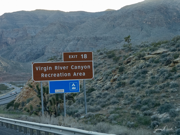 Our last scenic drive was through the Virgin River Canyon in St. George, Utah. It is a long canyon carved out by the Virgin River, which also created the topography of Zion National Park. At this point we were on Interstate 15 and we crossed the Virgin River a few times as we wound around the canyon. I was glad I was not the one driving.