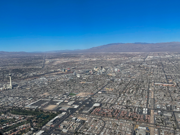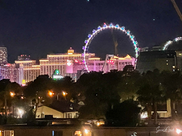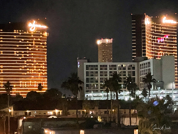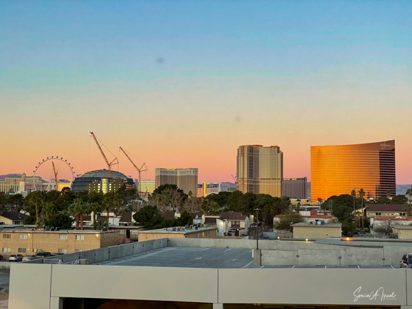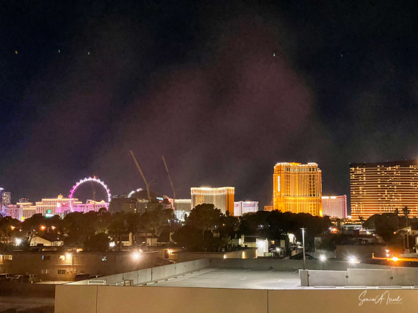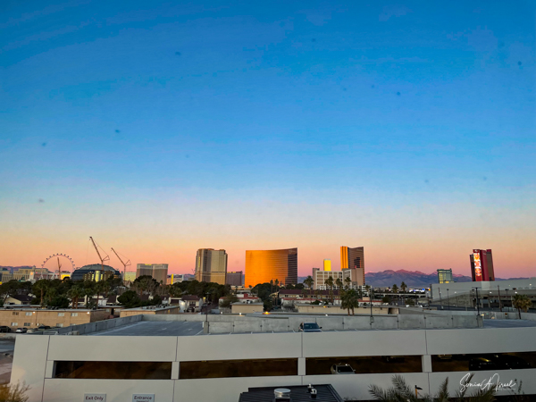 We got back late in the day, exhausted but exhilarated. And then we noticed the lights of the Las Vegas Strip from our window and sunrise the next morning.