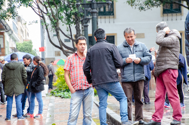 Colombia supplies 65% of the world’s emeralds. And unlike, for example, the diamond district in New York which is one diamond shop after another, here it is one small group of men (or sometimes women) after another, just standing around the plaza. The men all know each other and look out for one another. They sell to jewelry shops, to wholesale clients from around the world, and to tourists. They know their emeralds, as many of them worked in the mines and they sculpt and polish their own rocks. As everywhere, the unsophisticated tourist still needs to look out for scams.