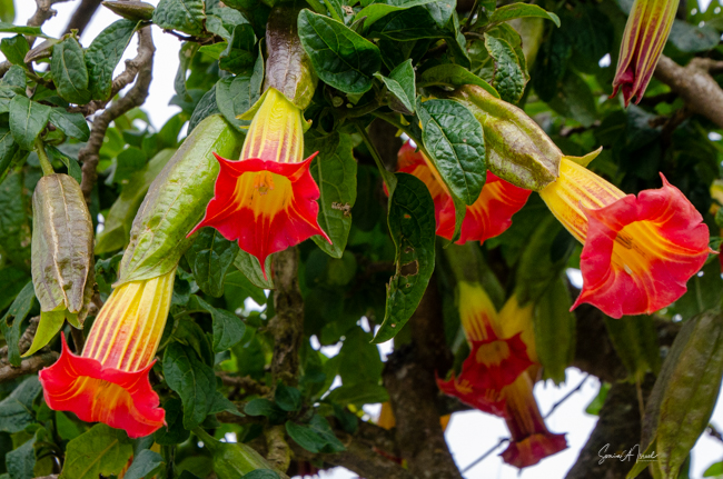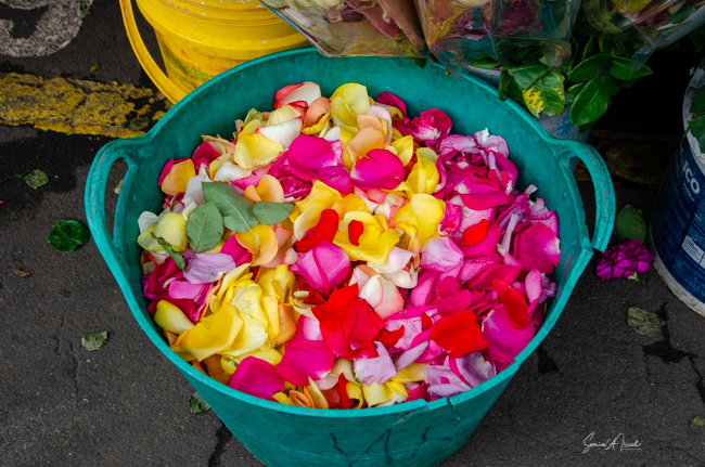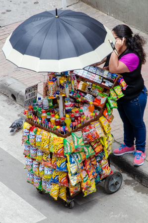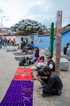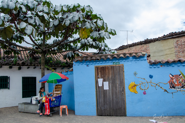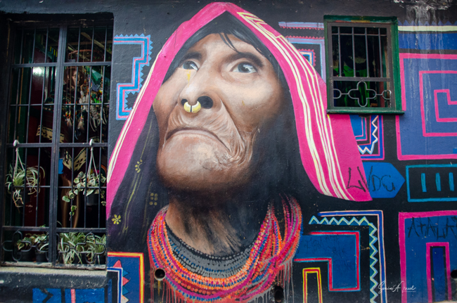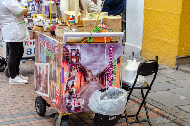 We began our walk, mesmerized by all the students (as the Universidad el al Salle is here), the street art, the narrow cobblestone streets (many of them closed to cars), the vendors with their home-made trinkets and art. But mostly the color. The color of the centuries old houses. The color of the murals. The color of the old churches (there are 400 of them in this one neighborhood). The color of the people’s outfits. The color of the trees (including the beautiful cecropia telealba with its silver leaves). The color of the sky. The color of the carts. The whole place felt like an eclectic juxtaposition between old and new, historic and modern.