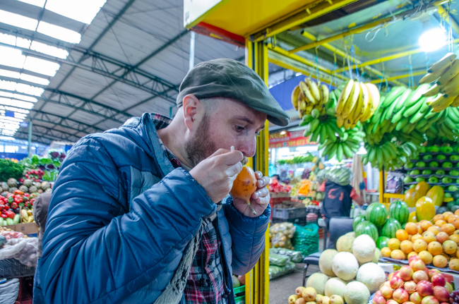 The morning started with a food tour of the Paloquemao Market. As the story goes, Paloquemao got its name from a large dry tree in the area that was burnt down (palo = trunk; quemado = burned) and from then on Bogotanos used the name as a point of reference.