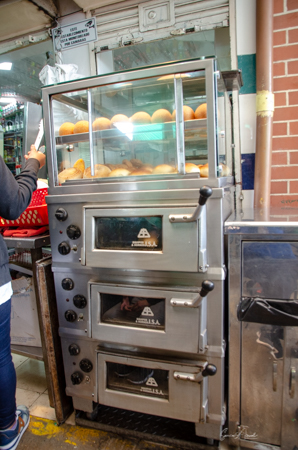 And we ended up back in the front, where there was a shrine and a large oven baking breads, and little chairs for people to sit and eat and drink coffee. We tasted bunuelos (a dessert made from fried dough covered in cinnamon sugar), almojabana (a type of cheese bread with guava inside), and Pan de bono (made of cassava starch, cheese, eggs, and yucca). Along with our Colombian coffee, it was quite a morning treat.