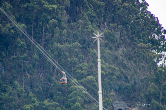 Our next stop was Santuario de Monserrate, an iconic symbol of Bogota that can be seen from just about anywhere in downtown Bogota and is sometimes called the mountain-guardian of Bogota. We parked the car and got on line for the cable car (known as the teleférico) that would take us 10,341ft above sea level for unbelievable views of the city below. There is also a funicular, but it was not running. Or you could go by foot, walking the1.5 miles up 1500 steps the way the pilgrims do.