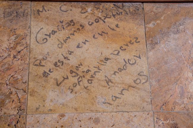 In the back of the chapel is a shrine dedicated to El Señor Caído (the Fallen Lord). The statue’s full name is Santo Cristo caído a los azotes y clavado en la Cruz (“Holy Christ fell to the whip and nailed to the Cross”). It has become one of the most important religious statues in Colombia and in times of crisis, is carried down to the city by massive crowds of pilgrims and devotees. All along the back walls people praying to this Christ have left tiles with messages. Oh, and this Christ is also black.