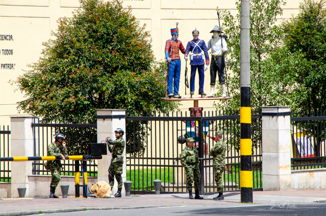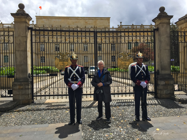 Juan took us to see the President’s House, complete with taking my picture with the guards from the National Army of Colombia’s 37th Infantry Presidential Guard Battalion. There was some official event taking place so we could not go inside. We did however walk along the gardens.