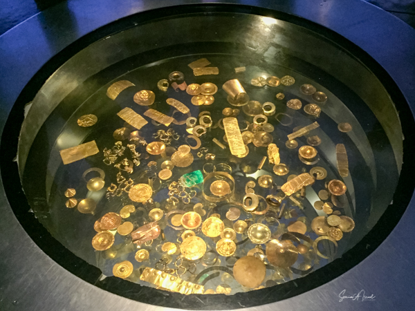 One of the most famous pieces in the museum is the Muisca Golden Raft. It is housed in a dark room, with just a sliver of light illuminating it, making it look like it is indeed floating in a lake.