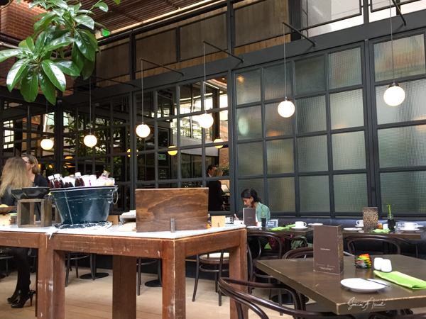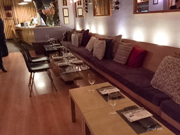 We had a little difficulty finding it as it is in a house set back a bit from the street. And not just any house. It is a huge, sprawling, house, covered in ivy. We walked up the front steps and opened the large door which led into the entry. The restaurant was huge, with a downstairs, upstairs and garden seating. There were chandeliers lighting the rooms, fireplaces, couches. It had a warm and inviting atmosphere.