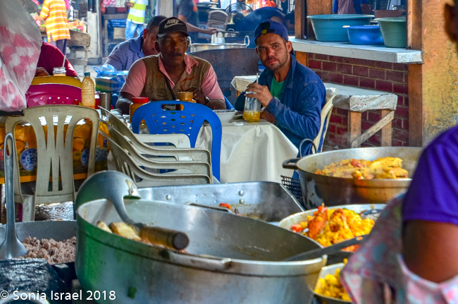 We saw locals ladies making arepas, a staple in Colombian cooking and food.  Arepas is sort of like a tortilla, made of ground maize or flour and eaten at all meals with cheese or avocado or absolutely anything else. People came here not only to shop, but to eat.