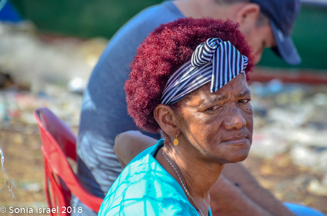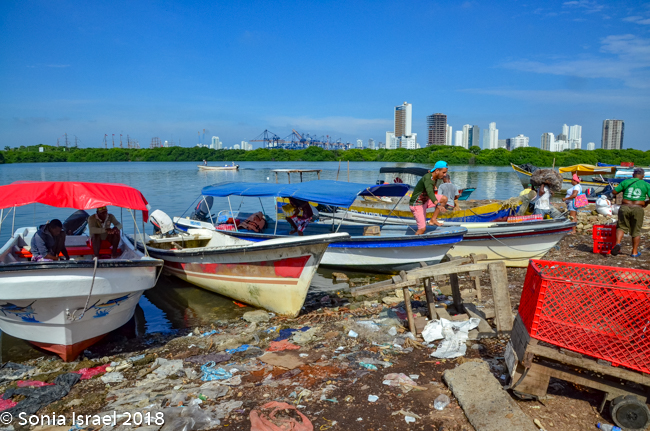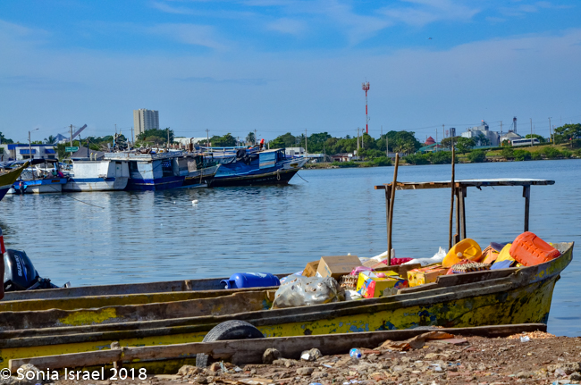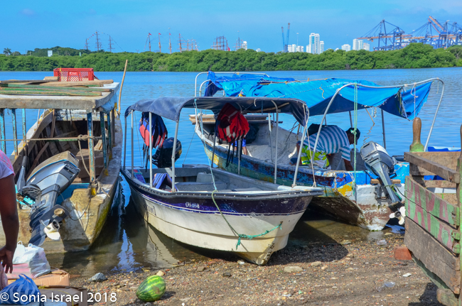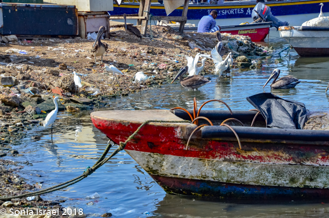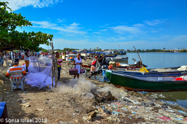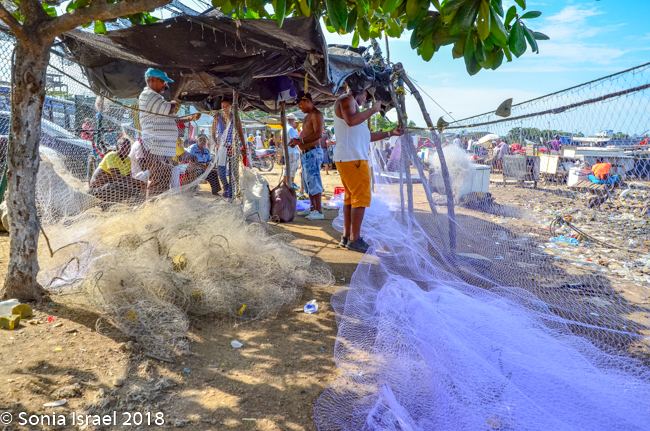 We drove about 30 minutes to get here. As we approached, we could see the Cienaga de Las Quintas Lake on one side of the road and the market on the other. This is how you get the freshest fish, by being right on the water. There were bright blue parrot fish, large tuna, and red snapper and many other types of fish all set out for people to buy. There were birds everywhere, following the fishing boats that were pulled up onto the shore. Fishermen were sewing their nets. And fresh fish was everywhere.