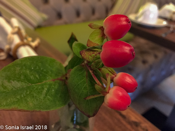 She showed us the large Bijao leaves from a plant that grows on the side of the roads here and used to wrap food, the way we would use aluminum foil. She showed us herbs that do different things at different times of the day (circadian rhythms and chronomedicine!). She talked about intentionality in food. She taught us that emotions and memory are important in cooking. We bought tree tomatoes, or tomate de arbol, a red-orange fruit shaped like an egg. The inside is orange and juicy, sweet and tart, all at the same time.  We bought other things I had never seen or heard of. Cooking all this was guaranteed to be fun.  And tasty.