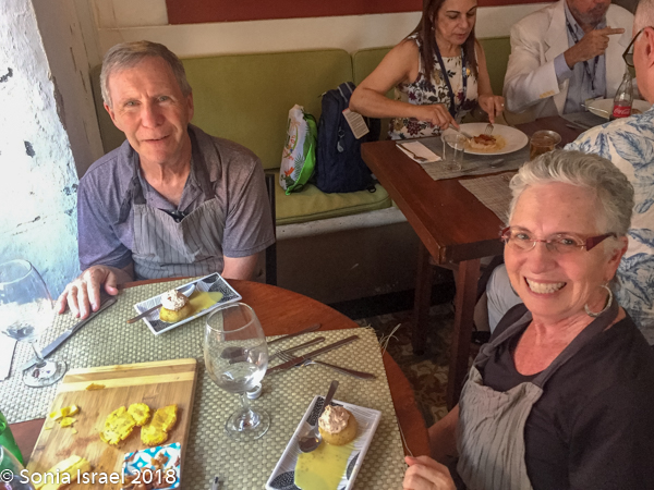 Today was a cooking day. But in order to cook, you first have to buy your ingredients. That’s how you ensure they are fresh.  Vicky met us at the hotel with Jose, our driver, and with Carolina Velez. Carolina is a chef who, with her ex-husband, Gilles Dupart, runs the French restaurant Oh! Là Là. Carolina doesn’t call herself a chef.  She said, “I’m a cooker.”  But trust me, she is a chef.