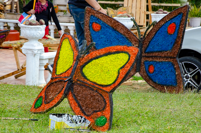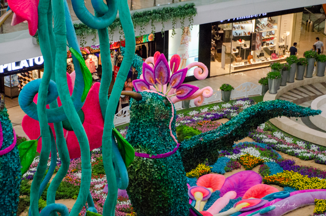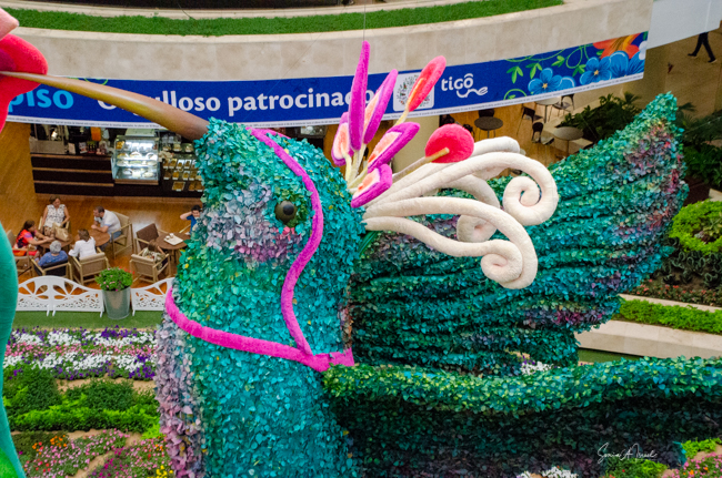 On the way back to the hotel, we were dropped off at the shopping mall, Santafé, not far from where we were staying. I had heard from someone we sat next to at dinner one night, that there was a gorgeous flower display there and I wanted to see it.  And outside was a statue of a silletero.  The stop was well worth it!