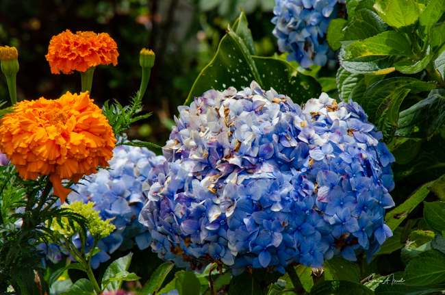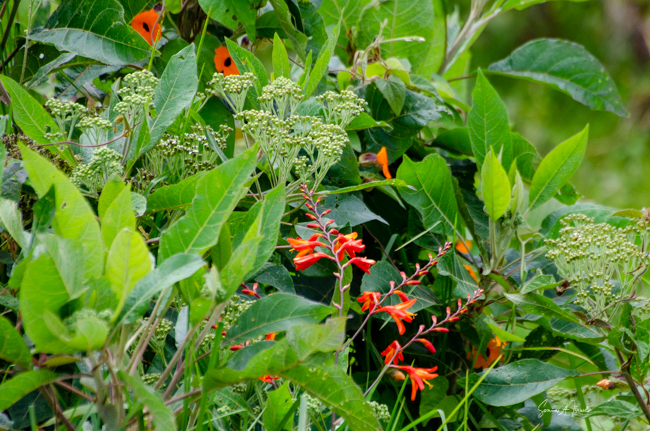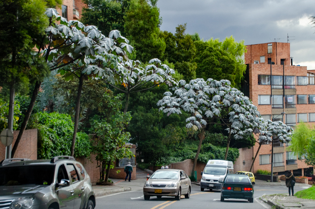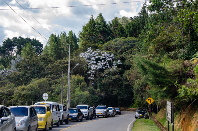 As a side trip from Medellin, we visited a flower farm in Santa Elena. .Juan Carlos, our guide, and Guillermo, our driver, picked us up at 9:00 and we headed towards Santa Elena. The ride took about an hour out of Medellin on the same road that heads to the International Airport, and onto the eastern mountain roads. The traffic was light. The roads narrow. Motorcycles were of course everywhere. The mountains were beautiful. Different shades of green. Trees everywhere. Every once in a while, there would be a tree in the distance, what looked like it was covered with white flowers or white birds. But it was a Silver Yarumo tree which close-up looked like silver leaves, but from the distance was white against the green.