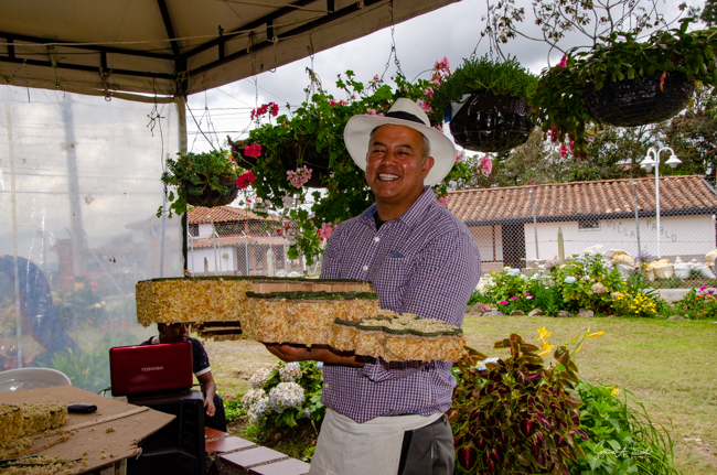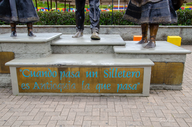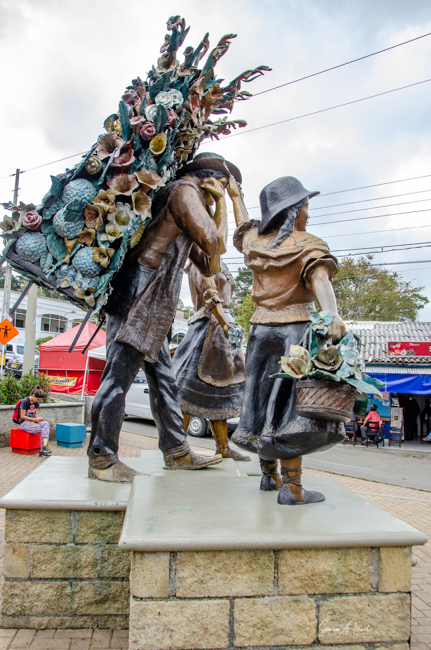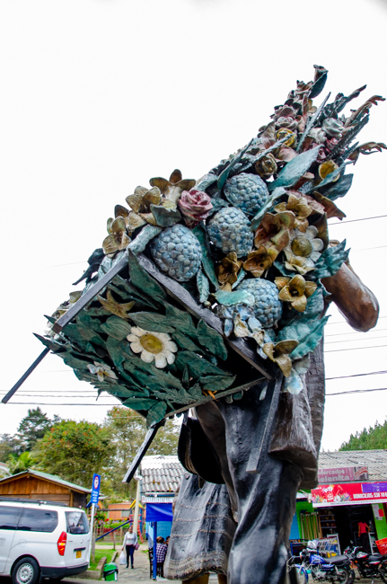 We drove some more and got to the main square of Santa Elena where there was a statue honoring the flower growers, the flower arrangers and the silleteros. At the bottom of the statue it says, “Cuando pasan los silleteros, es Antioquia que pasa.”  “When silleteros pass by, it’s Antioquia that is passing.”
