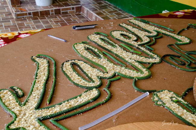 Only those born in Santa Elena who still grow flowers are allowed to participate. The techniques are passed down from generation to generation. Carmen’s two daughters, aged 7 and 4, have already begun. There is a local parade for kids one week before the official parade. Their silletas are smaller and have backpack type straps instead of head straps. The seven-year-old made a disc in white and blue flowers celebrating nature. She will participate in the main parade for the first time this August.