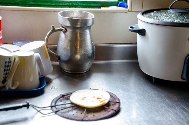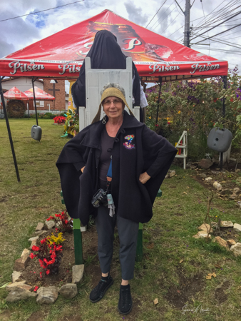 After we finished our tea, Carmen gave Andy and me each a ruana to keep us warm. The ruana is the traditional poncho typical of this area. The word ruana comes from the Chibcha word ruana meaning Land of Blankets. And these ponchos were indeed like wearing a warm, thick blanket.