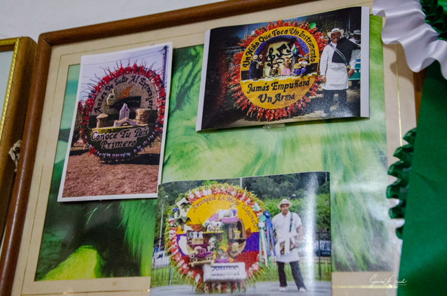 The grand winner gets to go to other countries, particularly to embassies where they are celebrating national holidays. Carmen’s mother, Blanco, won many times, as we could see from all her ribbons on display at her house, next door to Carmen’s. She has already gotten to go to Rome and, since 38 Colombians died in 911, she also got to travel to New York to pay homage to them.