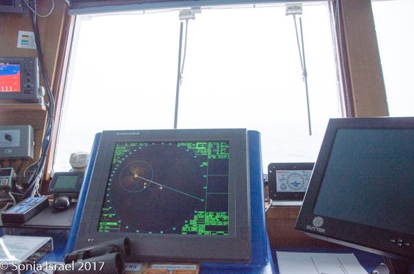 We were sailing towards the Antarctic Convergence, also called the Polar Front. This is a front is formed by the meeting of cold, dense and mostly non-saline waters flowing up from Antarctica and warmer, more saline waters coming south from the tropics. These conflicting currents clash, converge and sink. This mixing of waters provides a nourishing environment for seabirds and sea mammals. Our daily program said that this area is sometimes marked by a belt of fog or mist. The captain joked about us feeling a bump as we crossed it.