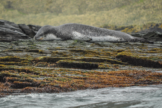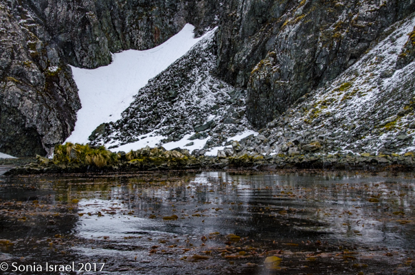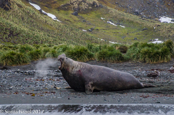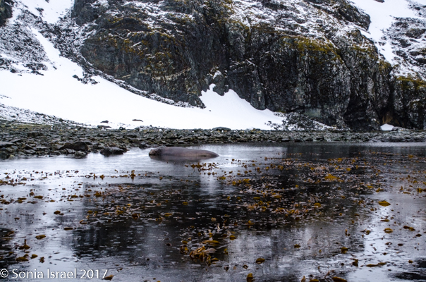There were snow flurries that turned into rain, but that only made the mountains more beautiful as they reflected into the water. We saw young elephant seal males, all alone, probably trying to figure out what they were supposed to be doing. We saw Waddell seals nursing their pups. We saw lots