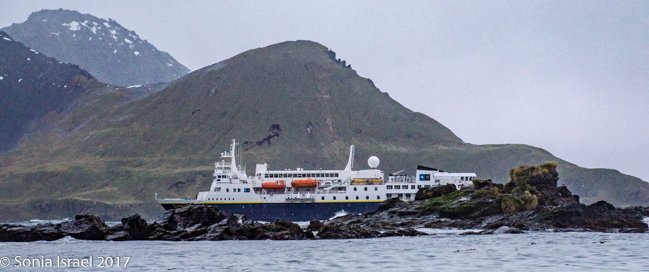 That afternoon we continued to the north of the fjord to Cooper Bay for another hike or zodiac tour. As usual, we did the zodiac tour where we saw more petrels, elephant seals and macaroni penguins. It was raining.