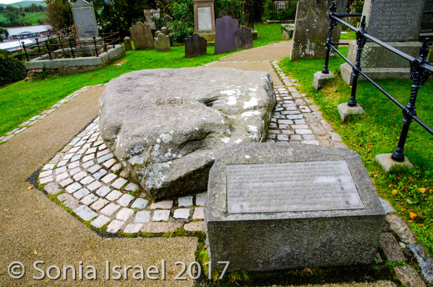And we arrived in Downpatrick where St. Patrick is buried. It was Sunday, so everything was closed, and mass was being conducted in the Cathedral (yes, also called St. Patrick’s). We stopped in the visitor’s center where we watched a video about St. Patrick. From there some of our group went to mass and some of us walked around looking for a place to have lunch. Unfortunately, the only thing open was Subway. You can travel far and still end up in the same place! Andy and I walked up the hill to the Cathedral and walked around the grounds, looking at St. Patrick’s grave and the old grave of others. It was bitter cold so we entered the Cathedral and sat in the vestibule, eating cookies and listening to the service. Once it was over, an older gentlemen in a purple sports jacket with a purple tie told us the story of the Cathedral. And by now we had heard this story of St. Patrick so many times, that watching him was really the best part.