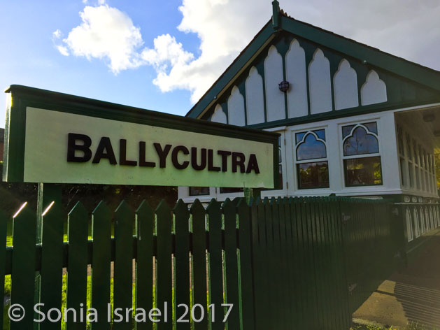 Then it was back on the road, back past sheep farms and colorful trees to Ballycultra, a museum of how life in the countryside of Ireland once was 100 years ago. There are thatched cottages, schools and shops all set up like long ago. Staff are dressed like yesteryear. Some buildings were brought over from their original sites in different parts of Ulster. Some are reproductions. It was cute, but not overly impressive. I think with young kids it would have been more fun. We did have lunch at the tea shoppe which had great homemade soup and Irish black soda bread and the most amazing apple pie (which we photographed but did not eat).