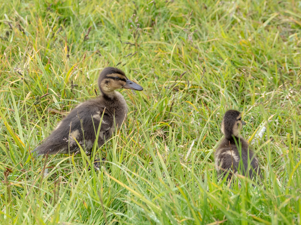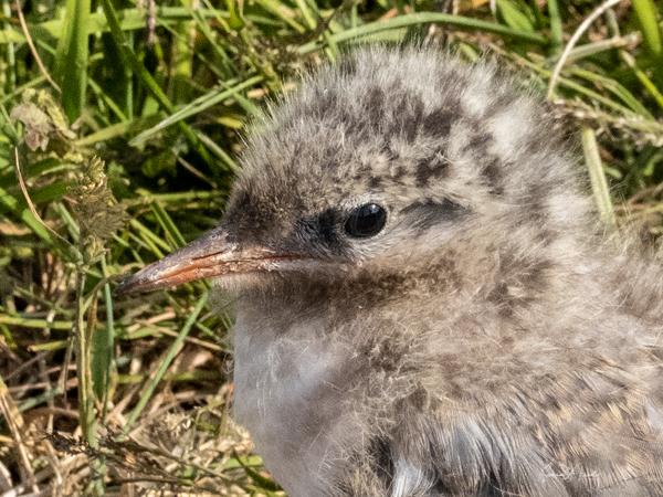 Like the puffins, both the male and female care for the 3-4 eggs in their grassy nest. The babies are protected in part they blend into their surroundings with their dark brown body with light-brown or yellowish stripes. Different from many other species, the mother leaves the babies as soon as they fledge, but the father stays with them until they learn to fly, showing them the good places to find food and calling out in their high pitch to warn them of dangers.