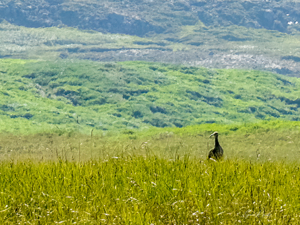 When we embarked off our zodiacs onto land on Flatey Island, the first bird we saw was a redshank. I couldn’t miss those bright orange spindly legs and the orange spot on it long, thin black beak which they use to reach into the ground to find their favorite food, invertebrates. Seeing the redshank right away should not have been a surprise as it is estimated that there are over 75,000 breeding pairs of redshanks in Iceland. In Icelandic, the bird is called “steklur” which means stalk, referring to the bird’s long and slender legs (the better to wade with in ponds and on the shores of the sea). In Danish “Rodben” means red legs, although the Icelandic version of the bird has orange legs. The rest of the bird is more brownish but almost in a speckled or striped way.