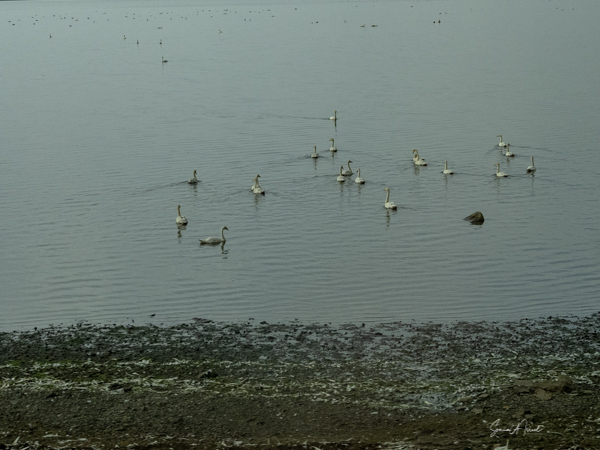 There was one day when we drove along the Eastern coast on our way to Fjallsarlon to see the glacier and ice bergs. On the way we passed the Alftafjorour which means “Swan Fjord,” called that because there can be thousands of Whooper Swans (pronounced hooper) there at any given time. The farmers in that area are not wild about them as the swans go into their field and attack their sheep, but they are protected so no one can harm them.