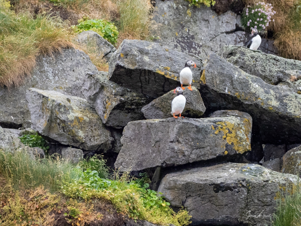 I mentioned that on Grimsey I found myself sitting near the puffins’ burrows. That is how they breed. They live in large colonies often on the coastal cliffs and they nest in crevices among the rocks or in burrows in the soil.